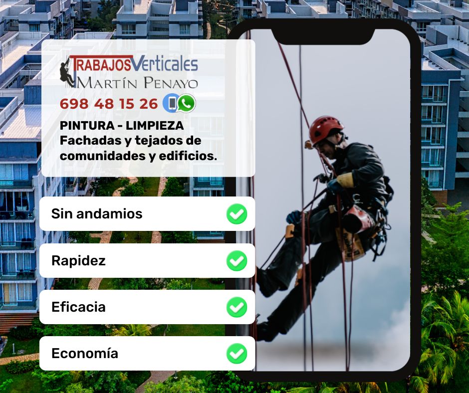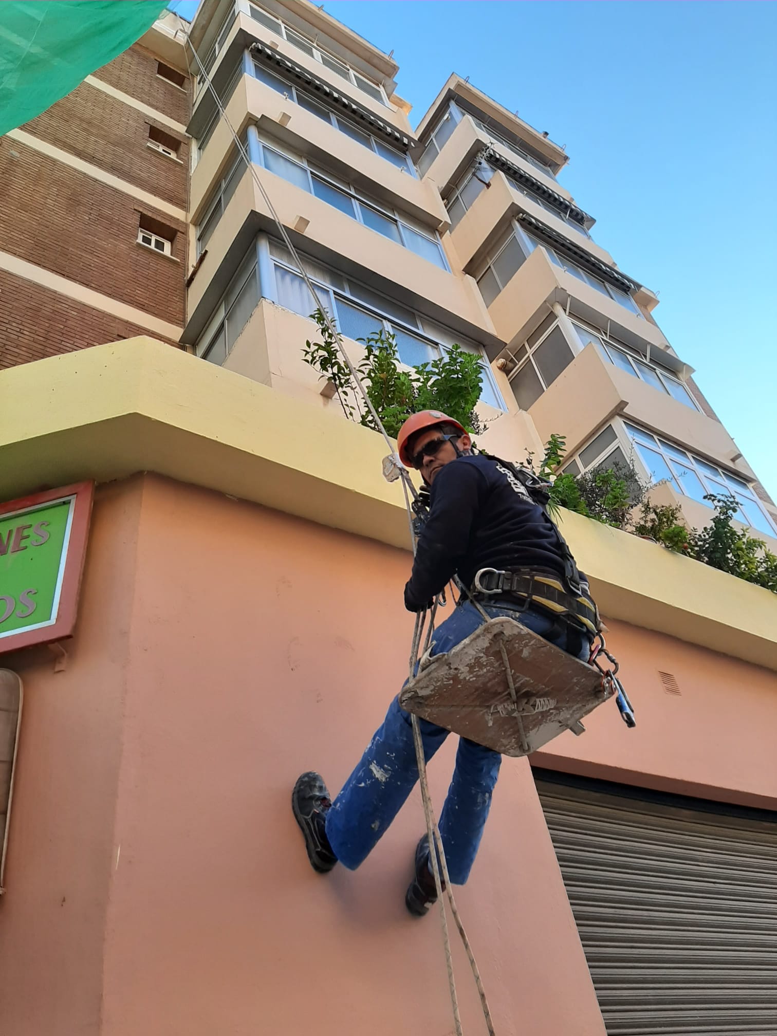 Mediante la técnica de cuerdas, economizamos costos a nuestros clientes ya que entre otras cosas, no montamos ningún tipo de andamios ni contratamos grúas, haciendo nuestros trabajos en altura de forma segura , rápida y económica.